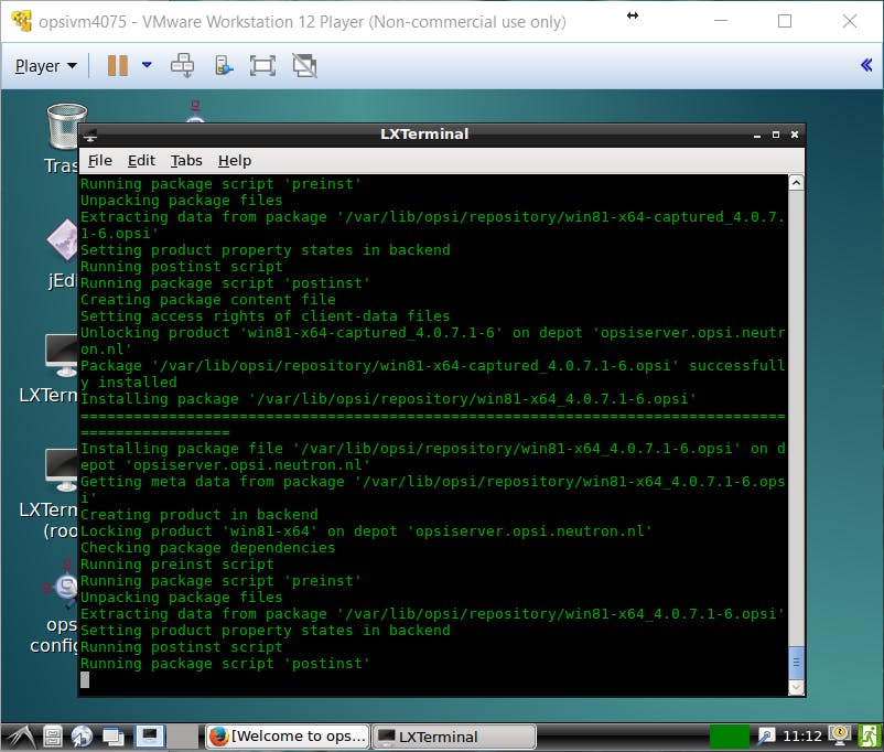 Daarna is het tijd om Opsi zelf te patchen en de Opsi-producten te installeren. Daarvoor voer je op het bureaublad het programma opsi-product-update FirstRun uit. Nadat alles klaar is, voer je als laatste nog op het bureaublad opsi-set-rights uit waarna je klaar bent om met de serverinterface aan de slag te gaan.