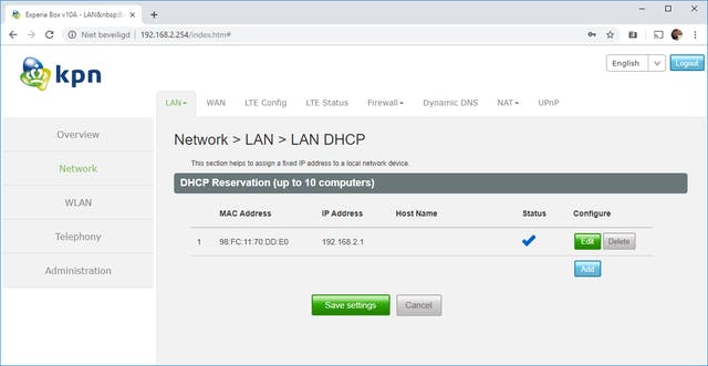 Zorg er met een DHCP-reservering voor dat je eigen router hetzelfde IP-adres houdt.