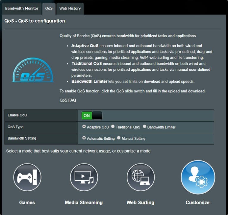 Routerfabrikant ASUS heeft deze meer geautomatiseerde vorm van QoS ook naar ethernetverbindingen doorgetrokken, onder de naam Adaptive QoS. Je hoeft hier alleen maar de aangeboden presets naar prioriteit te ordenen. Experimenteer gerust met QoS, maar ga wel na of het daadwerkelijk de prestaties van het beoogde verkeer verbetert.