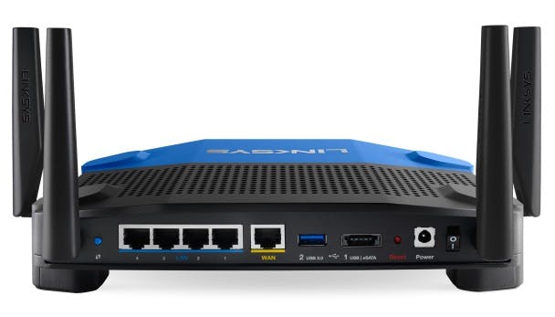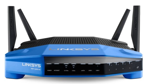 Linksys' WRT54G uit 2002 was erg populair doordat er custom firware op gedraaid kon worden en de serie is zelfs zo populair dat Linksys nog steeds een WRT54GL 802.11g-router verkoopt. Hoewel de nieuwe WRT1900AC qua uiterlijk duidelijk geïnspireerd is op zijn 802.11g-broertjes is dit onmiskenbaar een moderne router. Met 802.11a/b/g/n/ac worden alle draadloze standaarden ondersteund en uiteraard kun je gelijktijdig gebruik maken van 2,4 en 5 GHz. De theoretische snelheid via 802.11n bedraagt 600 Mbit/s terwijl de theoretische snelheid via 802.1ac 1300 Mbit/s bedraagt. Het optellen van deze twee snelheden verklaart direct de naamgeving van de router. Overigens is de theoretische snelheid van 600 Mbit/s via 802.11n alleen mogelijk in combinatie met een beperkt aantal moderne wifi-chipsets en is dit dus vooralsnog meer marketing. De router gebruikt drie datastromen, maar heeft vier antennes om het signaal zo optimaal mogelijk te richten. Opvallend is dat de router naast een usb3.0-poort ook een eSATA-aansluiting heeft die tevens dubbelt als een usb2.0-poort. De vier netwerkaansluitingen en de WAN-poort ondersteunen gigabit. Linksys wil duidelijk dat de router goed presteert want de router draait op een dualcoreprocessor op 1,2 GHz in combinatie met 256 MB RAM. Kracht betekent vaak hitte en de WRT1900AC is voorzien van een ventilator. Dat is minder erg dan het lijkt, want we hebben hem tijdens onze test niet gehoord.