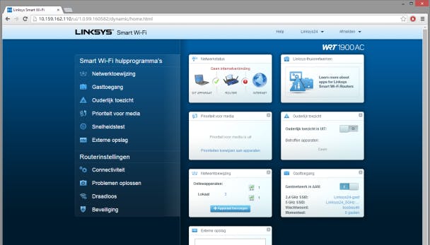 Linksys' WRT1900AC maakt gebruik van de duidelijke Smart Wi-Fi-interface.