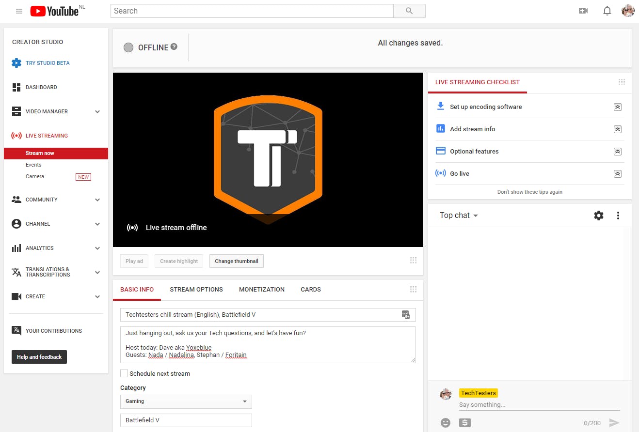 Welke keuze je uiteindelijk maakt, heeft nagenoeg geen invloed op de volgende stappen. Aanmelden op beide sites is relatief eenvoudig: kies een naam, registreer een e-mailadres en je kunt beginnen. Een paar stukjes persoonlijke tekst op je profiel om nieuwe kijkers te verwelkomen is overigens wel aan te raden. Verdere instellingen kun je later aanpassen. Wel dien je je ‘stream key’ te noteren; die heb je straks nodig (Twitch: Dashboard / Settings / Channel / Primary Stream key, YouTube: Creator Studio / Live Streaming / Stream key).