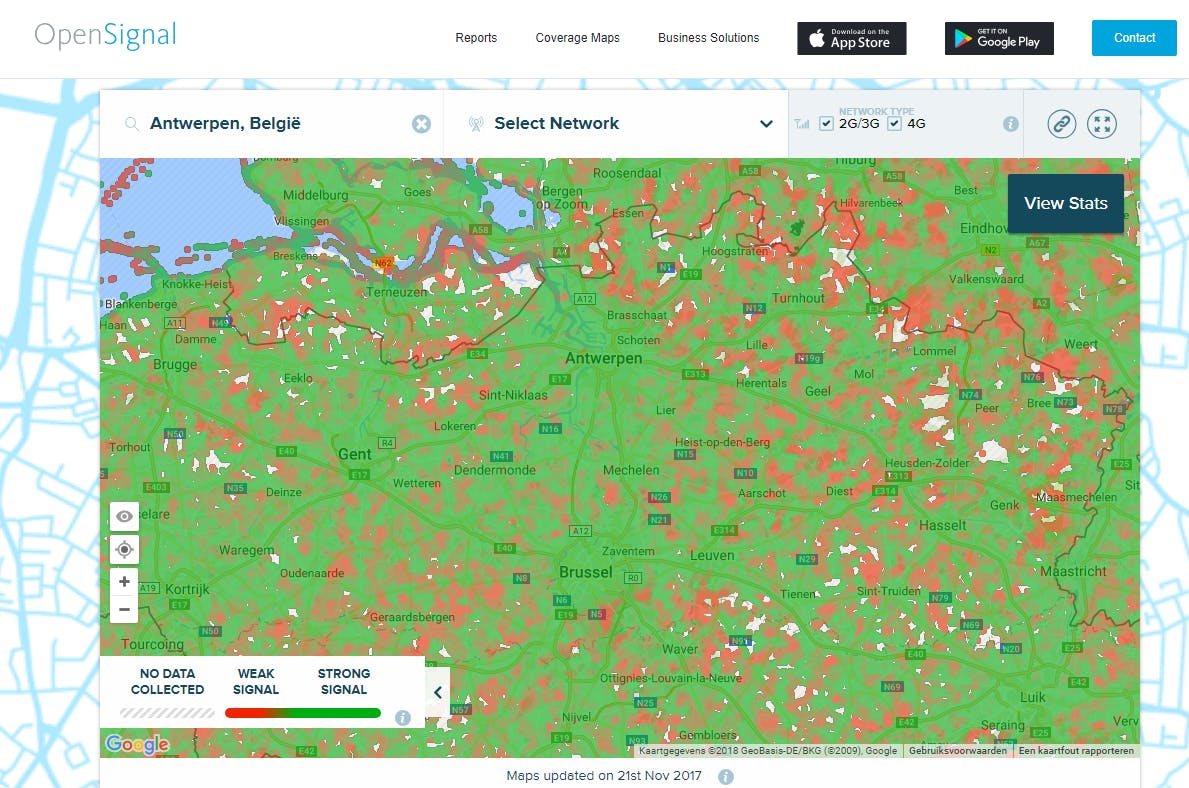 Wil je zeker zijn dat er dekking is rondom een bepaalde plaats, zoals je weekendbestemming of een vakantiestek over de grens? Providers bieden vaak zelf een dekkingskaart waarop je dit kunt controleren. Daarnaast staat er op www.opensignal.com een handige dekkingskaart waarop je dit wereldwijd kunt nagaan voor alle plaatselijke providers. De data op die website wordt verzameld via de gebruikers, ook wel crowdsourcing genoemd. Je kiest eenvoudigweg een stad of land in het lijstje en één van de providers die daar actief is. Op de kaart zie je vervolgens de netwerkkwaliteit. Overigens is het soms wat lastig om uit te vissen met welke buitenlandse providers jouw provider een roaming-overeenkomst heeft. Vooral bij Tele2 zijn de mogelijkheden voor 4G-roaming over de grens erg beperkt, al moet die situatie in de loop van dit jaar beter worden.