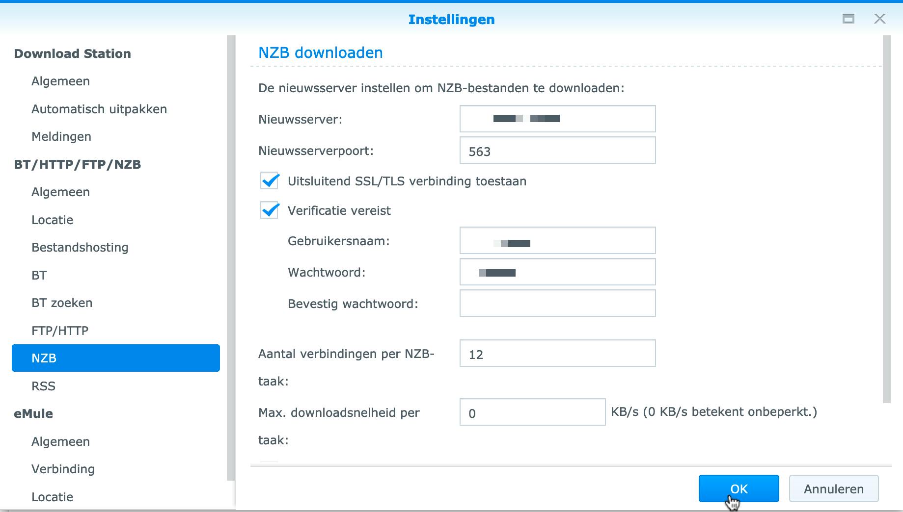 Wel geldt dat je een abonnement op een usenet-provider moet nemen. De meeste internetproviders bieden slechts beperkt of zelfs geen toegang tot de groepen met ‘binaries’ (ofwel downloadbare bestanden) erin verstopt. Een bekende usenet-provider is bijvoorbeeld Xlned. Heb je daar een account gemaakt en een abonnement besteld (de mogelijkheden verschillen vooral in downloadsnelheid), dan klik je – nog altijd in het instellingenvenster van Download Station – op NZB. Waarom nzb? Komen we zo op terug!