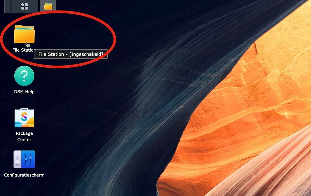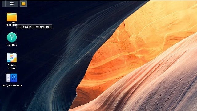 Je vindt File Station na een standaardinstallatie van je NAS op het bureaublad, maar ook in het startmenu. Dat laatstgenoemde open je door een klik op de startknop helemaal links op de menubalk boven in beeld. Welke weg je ook kiest: na een klik op het pictogram File Station start de app.