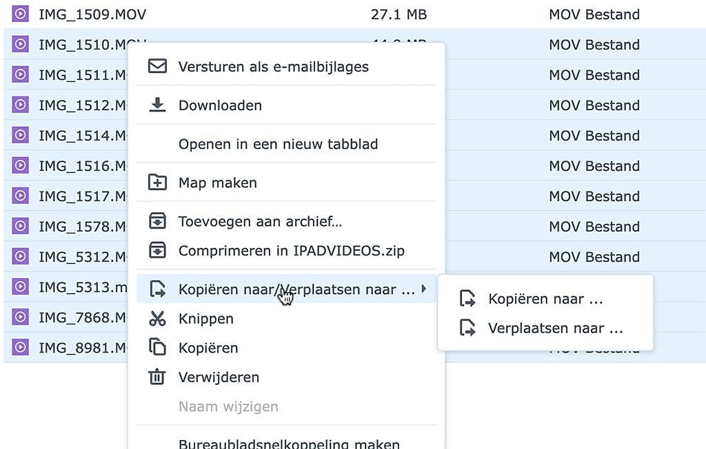 Je kunt trouwens meerdere bestanden en mappen tegelijk selecteren, kwestie van de Control- of Command- (macOS)-toets tijdens het aanklikken ingedrukt houden. Ook de truc met de Shift-toets werkt, ofwel: klik op het eerste gewenste bestand (of map) in een lijst en dan op ’t laatste. Alle tussenliggende bestanden en mappen worden dan in één keer geselecteerd.