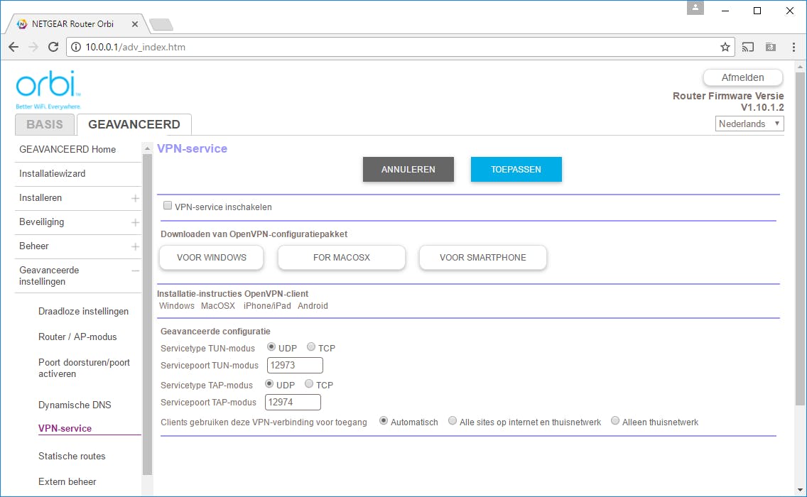 Qua mogelijkheden zijn de goedkopere uitvoeringen gelijkwaardig aan de duurdere Orbi. Je krijgt dus nog steeds een relatief uitgebreide webinterface die zich qua mogelijkheden kan meten met de betere normale routers. Zo is Orbi voorzien van een vpn-server. Net als hun grote broer kun je de goedkopere Orbi’s behalve als router ook inzetten als accesspointsysteem waarbij je een eigen router gebruikt als basis voor je netwerk. Ten opzichte van andere systemen in de markt valt op dat de app qua mogelijkheden achterloopt. Bij een geconfigureerd Orbi-systeem kun je met de app niet veel meer dan het aanpassen van het wifi-wachtwoord. Wel kun je de app tegenwoordig gebruiken om het systeem in gebruik te nemen. Toen de eerste variant van Orbi op de markt verscheen, was er overigens helemaal geen app. Andere wifi-systemen hebben echter geen webinterface waardoor Orbi uiteindelijk de meeste mogelijkheden biedt en ook de wat enthousiastere netwerkliefhebber zal aanspreken.