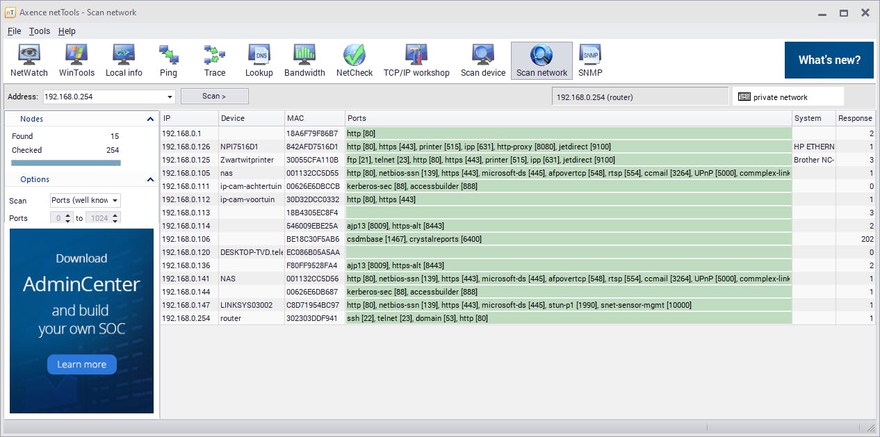 Je krijgt een handig overzicht van de actieve poorten en services op je netwerkapparaten