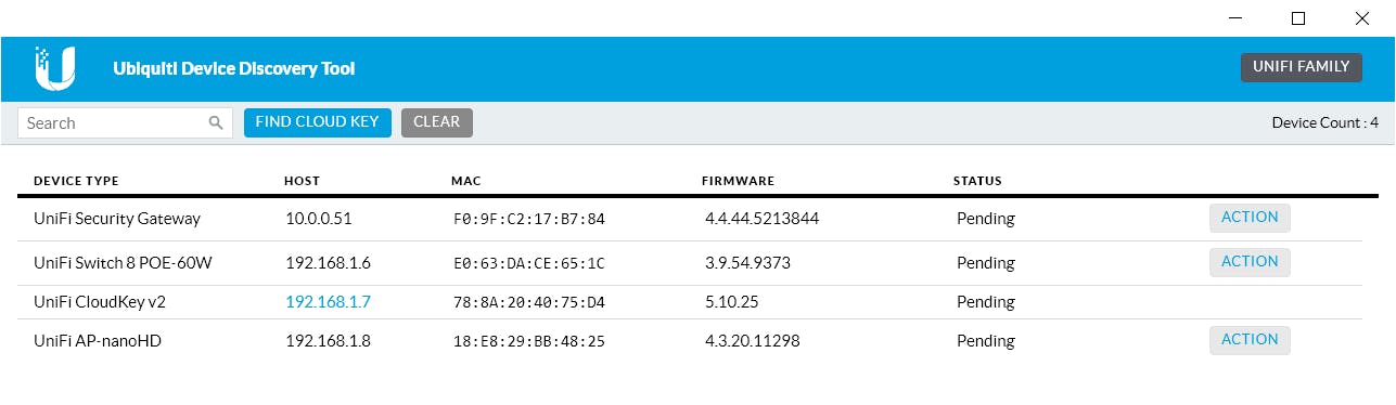 Het ip-adres van de Cloud Key Gen 2 is af te lezen op het kleine led-scherm op het apparaat, en anders kun je met de Ubiquiti Discovery Tool, een extensie voor Google Chrome, de Cloud Key opsporen. Open dan de webinterface van de Cloud Key.
