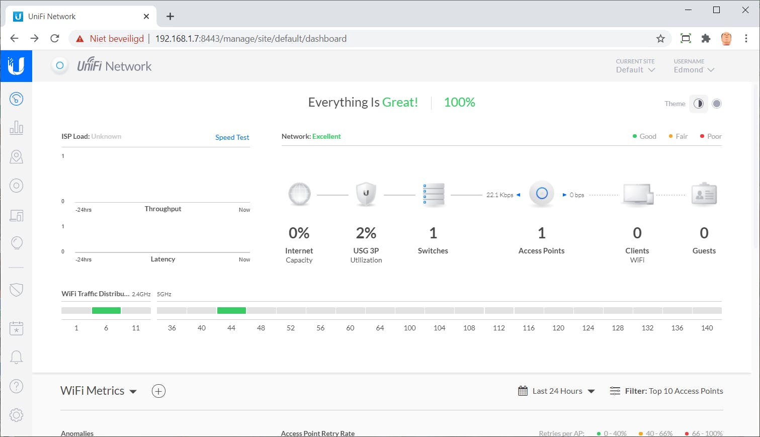 Kenmerkend voor de UniFi-serie van Ubiquiti is dat alle UniFi-apparaten zich als één geheel laten configureren en beheren. Hiervoor gebruik je een UniFi Network Controller. Dit is software die je gratis downloaden hier kunt downloaden voor Windows, Linux of Mac OS. Gebruik op een pc is prima voor de configuratie, maar heeft als nadeel dat als je daarna eens iets wilt aanpassen of oplossen, dit alleen kan als de pc is ingeschakeld.