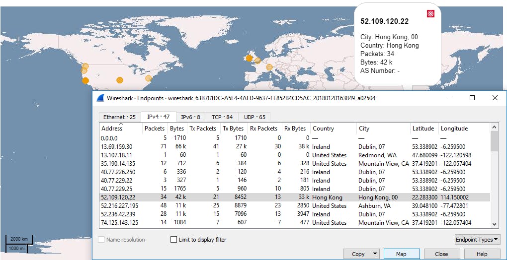Wireshark kan ook de MaxMind GeoLite-databases gebruiken om ipv4- en ipv6-adressen aan een geografische locatie te koppelen. Ga naar deze site, download de binaire databases GeoLite Country (IPv6) en GeoLite City (IPv6), pak de archieven uit en plaats beide dat-bestanden in dezelfde map.