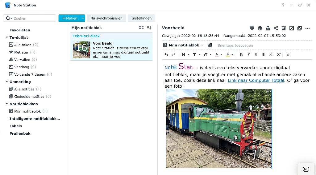 Gebruik je bijvoorbeeld Microsoft Office, dan ken je vast het onderdeel OneNote daarvan. Precies dat soort software bedoelen we dus. Het aardige is dat Synology ook zo’n app voor de NAS beschikbaar heeft: Note Station. Je kunt dat los installeren op je NAS en na inloggen bij de webinterface (in de vorm van een bureaublad) in je browser gebruiken. Handig, want zo heb je het altijd bij de hand.