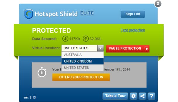 Hotspot Shield VPN Elite heeft geen ingewikkelde instellingen: installeren, verbinding maken en direct veilig surfen.