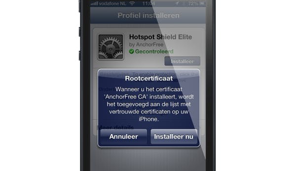 Om veilig verbinding te maken met elk wifi-netwerk, wordt een apart VPN-profiel geïnstalleerd op je smartphone. Deze zorgt ervoor dat het verkeer via de VPN-server van Hotspot Shield wordt omgeleid.