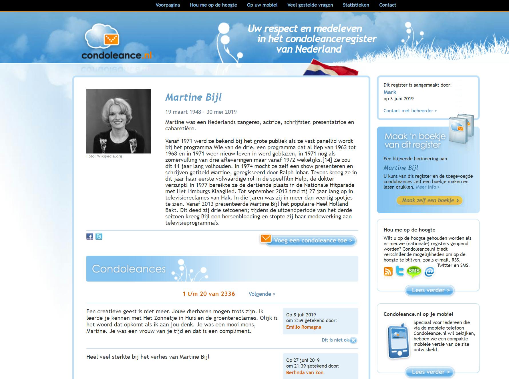 De site die we in dit geval aanraden is condoleance.nl. Deze site heeft zowel een nationaal register (voor bekende Nederlanders en mensen die zijn omgekomen bij rampen of misdrijven die heel het land hebben geraakt) als een particulier register, bedoeld voor iedereen waarvoor je een register wilt openen.