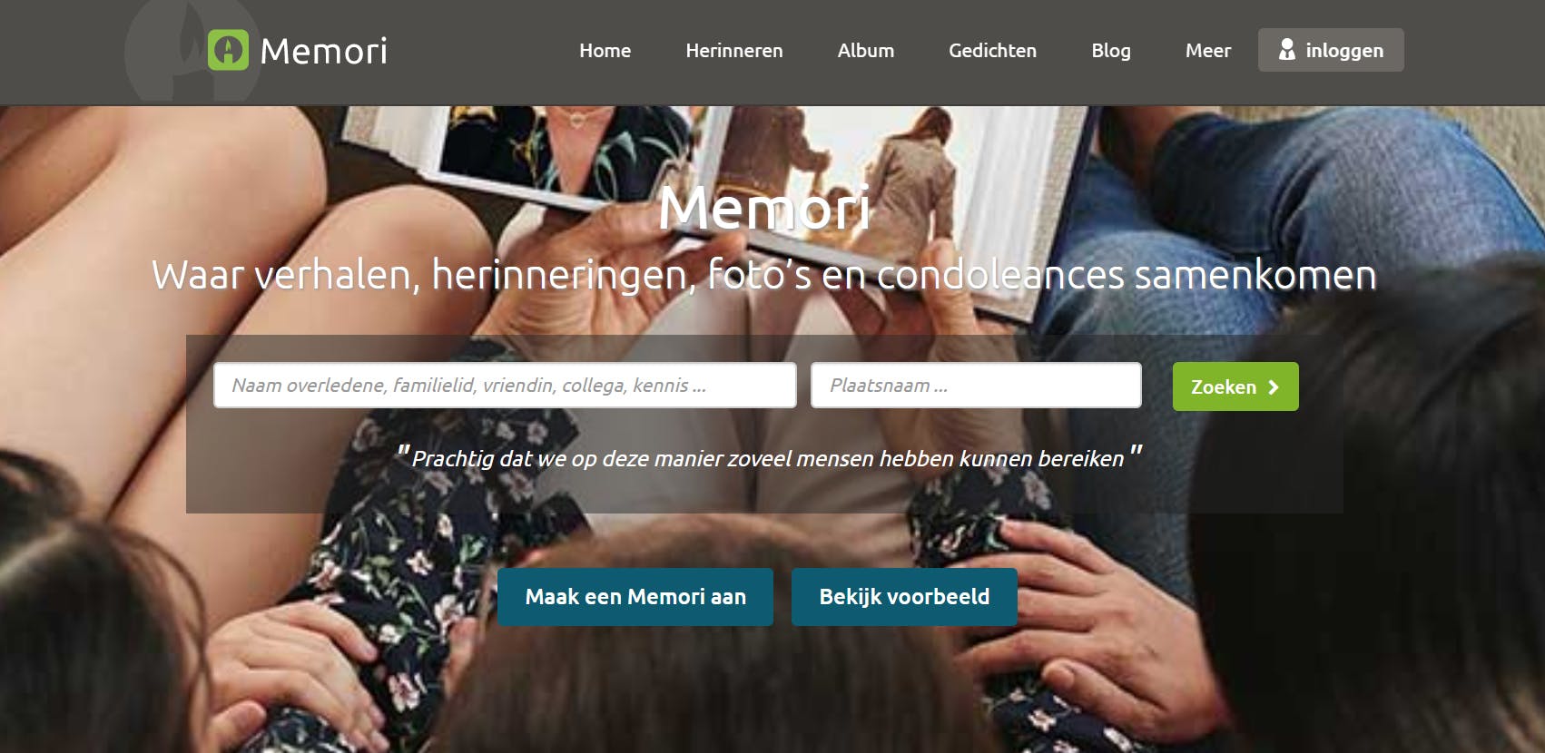 Wil je een gedenkpagina voor langere tijd hebben, maar zie je het niet zitten om dat via de EO te doen, dan is Memori.nl een prachtig alternatief. Deze site heeft, net als Herdenkenwij.nl een zeer mooi ontwerp en maakt het je heel eenvoudig om een gedenkpagina voor iemand te maken.