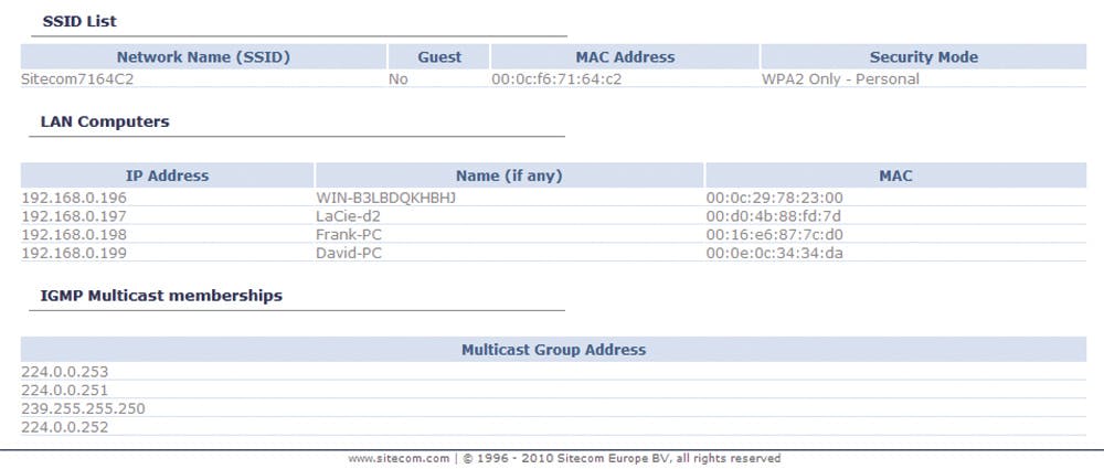 Kunt u niet op naam selecteren en wilt u het ipadres weten van uw nas (en dit is dus een ander ip-adres dan dat van uw internetaansluiting), dan kunt u dat onder meer te weten komen door het overzicht van uitgedeelde ipadressen (dhcp) te bekijken in uw router (afbeelding). Dit overzicht bevindt zich soms in het hoofdscherm, maar kan ook deel uitmaken van het administratiemenu.