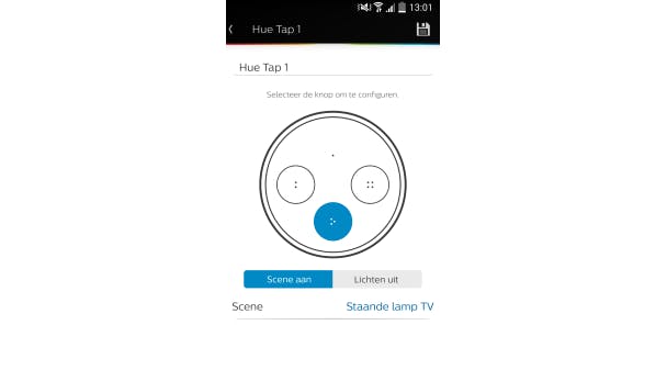 Je kent via de app scènes eenvoudig toe aan een knop.