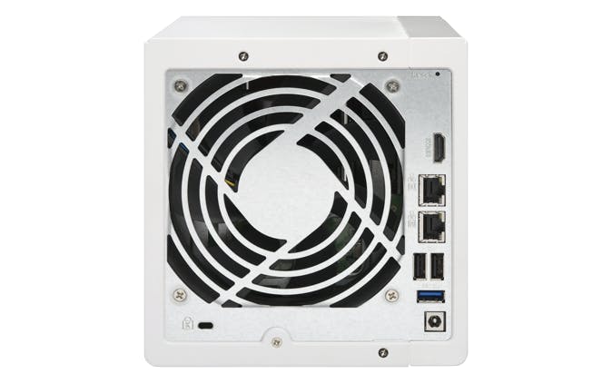 De TS-451 beschikt over twee netwerkpoorten, twee usb 2.0-poorten en twee usb 3.0-poorten, maar een eSATA-aansluiting ontbreekt dan weer. Voor QNAP is dit dus duidelijk een beetje een beginnersmodel, maar dankzij de vier schijven en de verder prima uitrusting maakt dat het aanbod alleen maar interessanter. Daarbij beschikt de TS-451 wel over een HDMI-poort zodat de NAS ook rechtstreeks op bijvoorbeeld je televisie kan worden aangesloten en als mediaspeler kan worden ingezet.