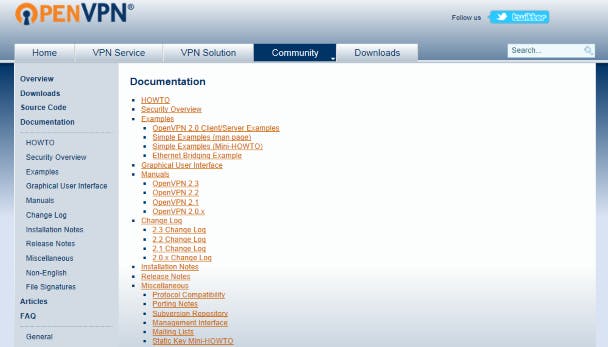 OpenVPN heeft heel wat meer mogelijkheden dan we hier getoond hebben. Op deze webpagina vind je enkele tips. Maar ook de website van OpenVPN zelf staat boordevol met informatie. Klik links op Documentation om de uitgebreide documentatie te bekijken. Ook de voorbeeldconfiguratiebestanden staan overigens vol met informatie die uitlegt waarvoor alle opgenomen regels dienen. En als er iets misloopt, kijk dan eens naar foutmeldingen in de uitvoer van grep ovpn /var/log/syslog.