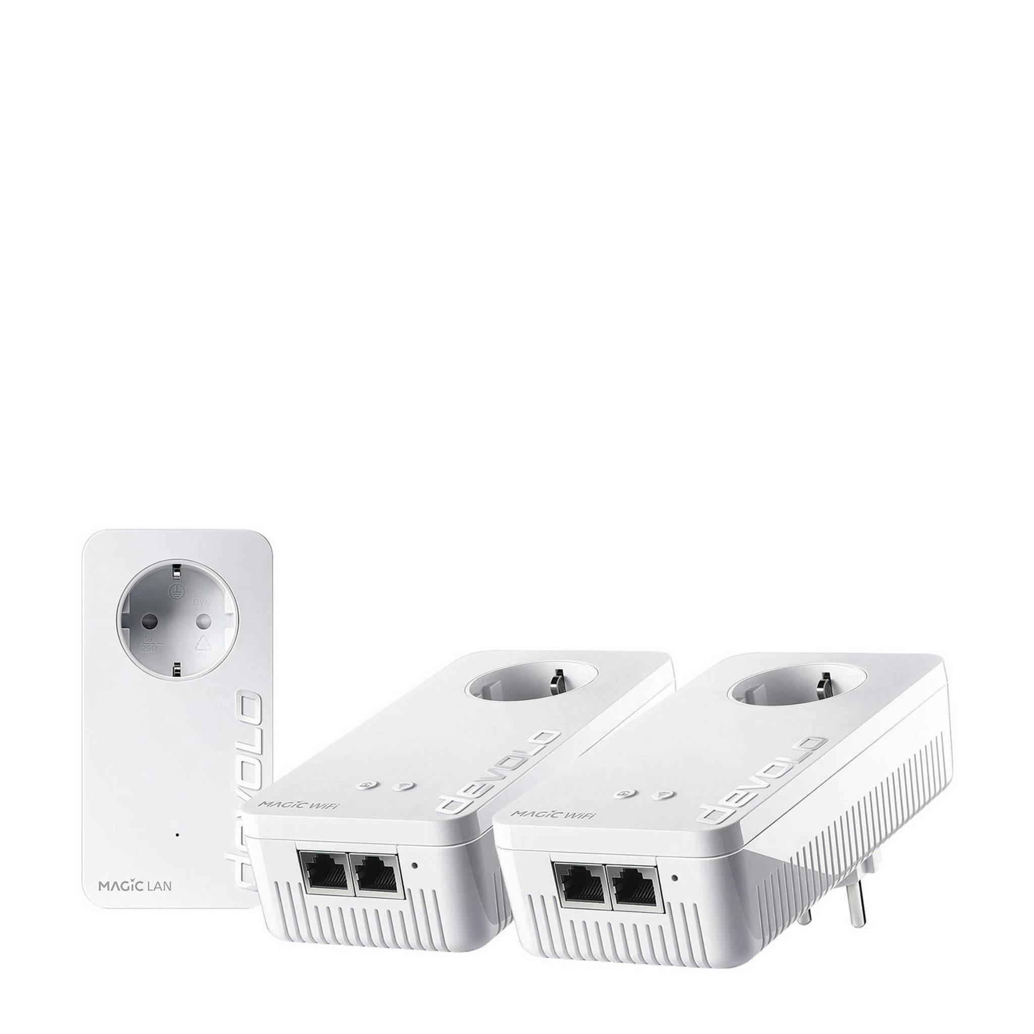 De Magic 2 Wifi 6 Multiroom Kit is een powerlineset bestaande uit twee wifi-powerlinestekkers, een lan-powerlinestekker en een ethernetkabel met een lengte van twee meter.