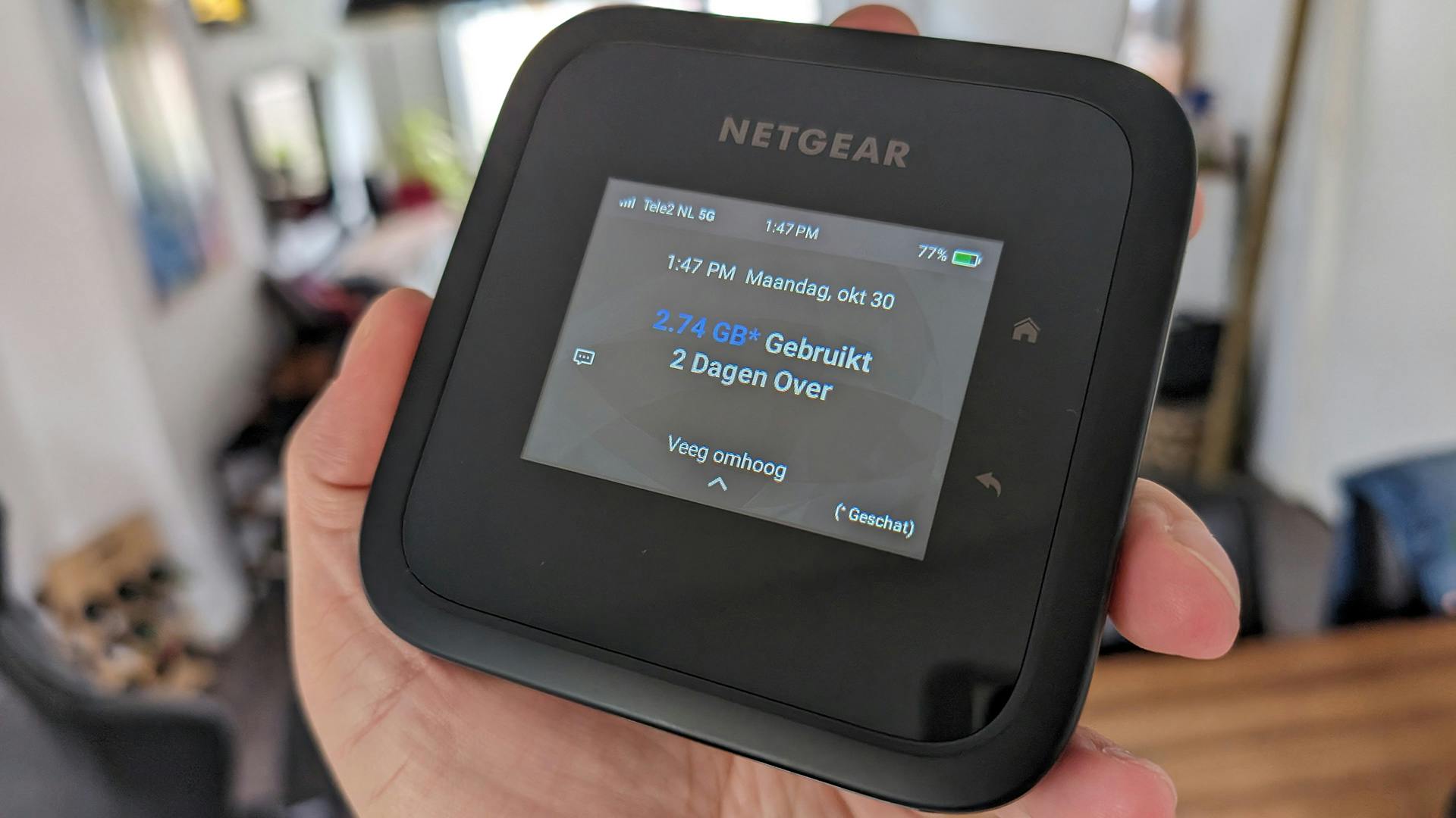 Aangezien je de Netgear Nighthawk M6 Pro behoorlijk veelzijdig kunt inzetten, hebben we hem op verschillende momenten getest. In alle gevallen is het belangrijk dat je vlak bij de mifi-router blijft. Want zodra je bijvoorbeeld de kamer uitloopt, dan verliest je smartphone verbinding met het netwerk. Wil je deze router dus als een soort back-up voor belangrijke apparaten in huis gebruiken, zorg er dan voor dat ze dichtbij genoeg staan voor het relatief beperkte bereik.