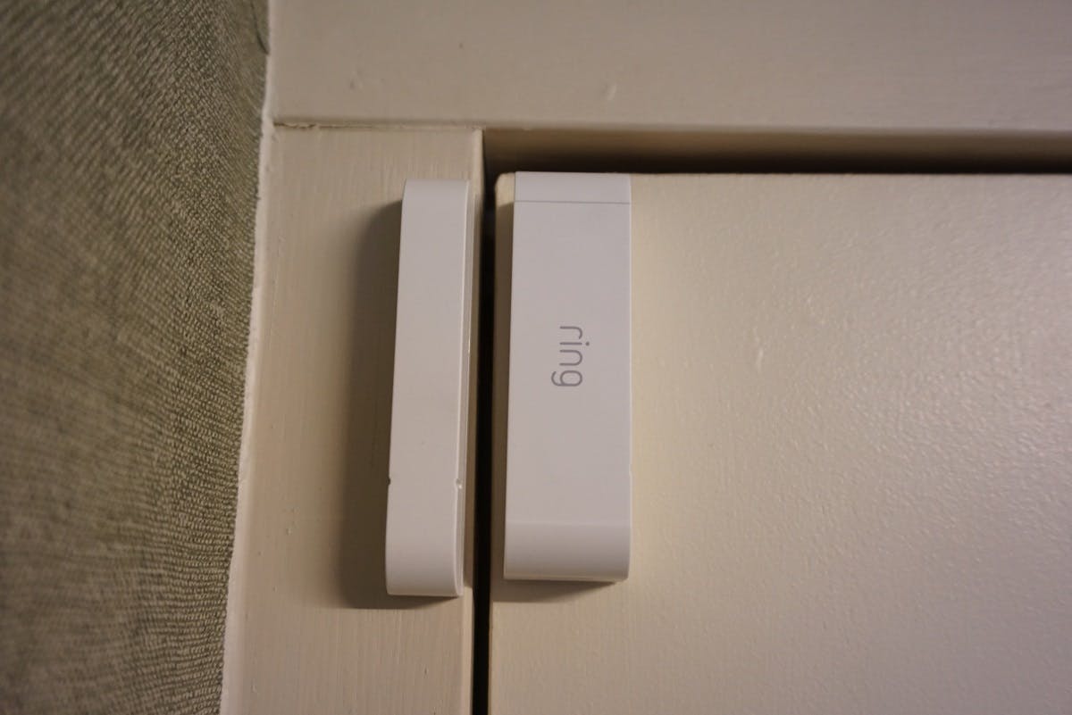 De goedkoopste starterskit kost 299 euro. Voor dat geld krijg je een basisstation, een signaalversterker, een bedieningspaneel, een setje contactsensoren en een bewegingssensor. Die eerste drie onderdelen horen echt bij het basispakket. Met het setje contactsensoren kun je één raam of deur beveiligen. De bewegingssensor is bedoeld om één kamer in de gaten te houden. Je bepaalt zelf waar je de sensoren ophangt. Doe dit in ieder geval binnen, en buiten handbereik van een inbreker. Ik heb mijn thuiskantoor beveiligd door het bedieningspaneel in de kamer bij de deur op te hangen, de bewegingssensor in een hoek op te hangen en de contactsensor op mijn raam te bevestigen. Je kan er ook voor kiezen om de bewegingssensor bijvoorbeeld in de woonkamer op te hangen en de contactsensor aan de binnenkant van de voor- of achterdeur te bevestigen. Als je – logischerwijs – meer ramen, deuren of ruimtes wil beveiligen, moet je extra sensoren kopen. Die vind ik stevig aan de prijs. Een setje contactsensoren kost 35 euro en voor een bewegingssensor betaal je 50 euro. Je hele appartement of huis beveiligen kan zo een dure grap worden. Ring verkoopt meer starterskits via zijn website, die naar verhouding voordeliger zijn dan veel sensoren los kopen.