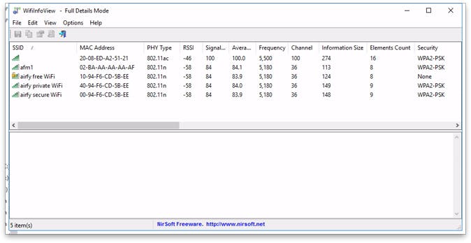 De applicatie WifiInfoView geeft veel informatie over wifi-netwerken in de buurt.