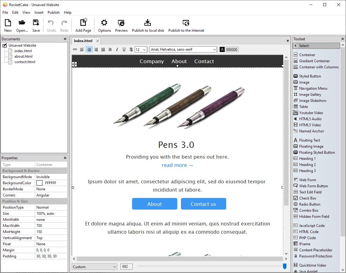 Site maken zonder html-kennis? Online editors om websites te bouwen winnen terrein, vaak vanwege onder meer de mooie sjablonen. Wil je liever niet beginnen vanaf zo’n kant-en-klaar ontwerp, dat vaak alsnog eindigt in een betaalde optie, dan heb je aan RocketCake een desktop-programma waarmee je van niets een mooie site bouwt.