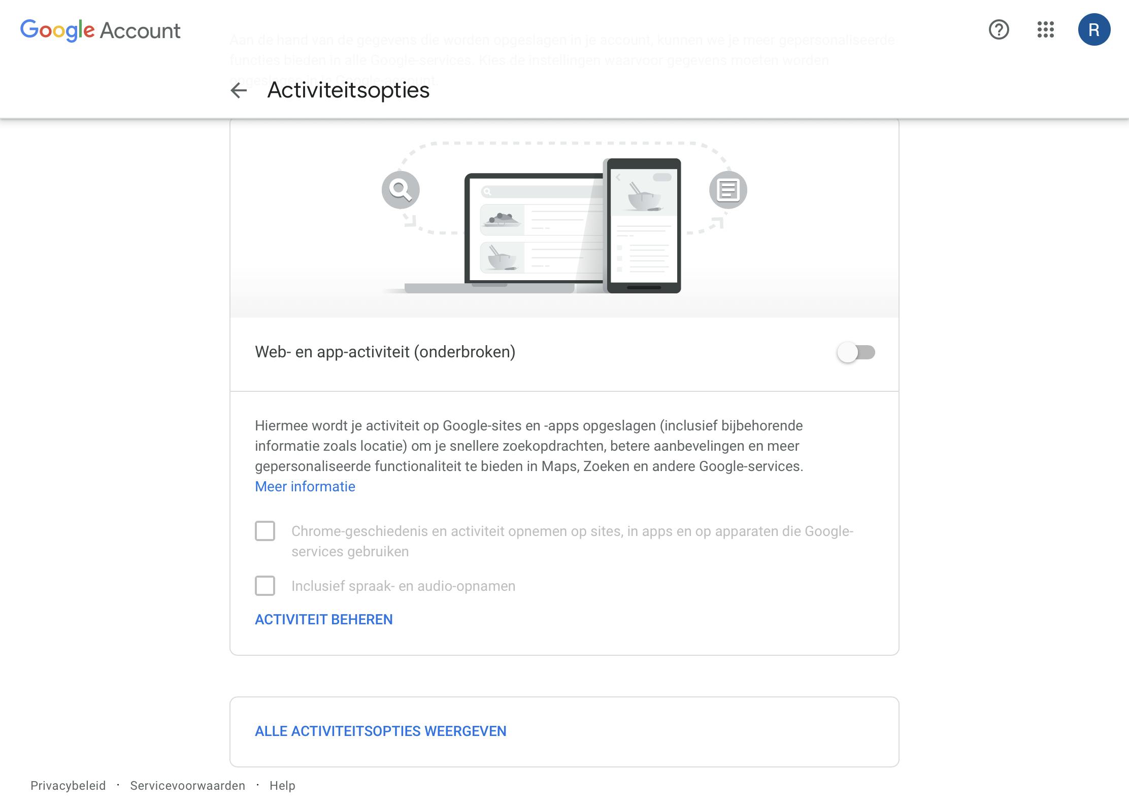 Een artikel als dit is heel vergankelijk. Google sleutelt namelijk continu aan de privacyinstellingen. In de afgelopen maanden is het er allemaal niet duidelijker en gebruiksvriendelijker op geworden. Je moet steeds verder doorklikken om opties daadwerkelijk aan te kunnen passen. Als iets even niet (meer) werkt zoals we in dit artikel hebben beschreven, klik dan ¬wat verder door of zoek naar gelijkaardige opties.