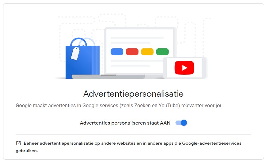 Ook geldt dat Google, mits je ingelogd bent tijdens het zoeken of gebruikmaakt van een Android-smartphone die altijd aan een Google-account is gekoppeld, nog altijd gewoon meeleest met jouw zoekopdrachten en interesses. Het omzetten van dat schuifje zorgt er alleen voor dat je er niet direct meer last van hebt. Vind je de gepersonaliseerde advertenties wél handig, dan kun je de schakelaar ook aan laten staan. Voor je privacy maakt het namelijk niet zo heel veel uit, meegelezen wordt er toch wel.
