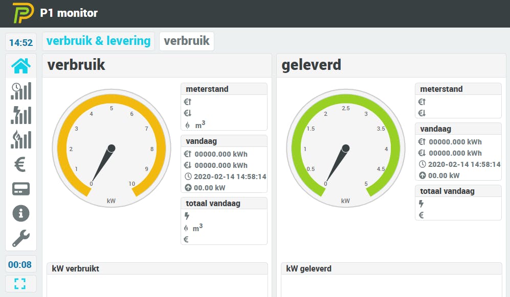 Als de Pi is opgestart, krijgt het van je router dankzij dhcp automatisch een ip-adres toegekend. Je kunt het opzoeken in de pagina’s van je router of de app Fing op je smartphone, maar echt vereist is dat niet: als je http://p1mon in je browser bezoekt kom je óók bij de gebruikersinterface van P1 monitor. Schrik niet als je nu nog geen gegevens van de slimme meter ziet. Er zijn verschillende uitvoeringen van de slimme meter die soms net wat andere instellingen voor de communicatie vereisen. Daarom gaan we daar eerst mee verder.