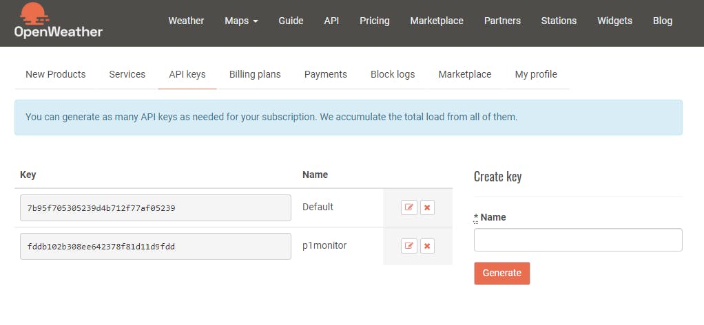 Bij OpenWeatherMap kunnen via een zogeheten api actuele weersgegevens worden opgehaald, waar software zoals P1 monitor gebruik van kan maken. Hiervoor moet je je eerst registreren. Een gratis account biedt al meer dan genoeg mogelijkheden, zoals het opvragen van het actuele weer op een bepaalde locatie. De limieten voor het aantal aanroepen zijn vaak ook meer dan voldoende. Verifieer na registratie eerst je e-mailadres en log dan in. Ga vervolgens naar het tabblad API keys. Hier kun je een nieuwe zogeheten api-sleutel aanmaken. Kies een herkenbare naam, bijvoorbeeld p1monitor. Je kunt zoveel api-sleutels aanmaken als je wilt, bijvoorbeeld één voor elke toepassing, maar bedenk dat alle aanroepen meetellen bij de limiet. In de praktijk zul je niet snel tegen beperkingen aanloopt, afhankelijk van hoe frequent de software de gegevens vernieuwt. P1 monitor zelf zal de weergegevens elk half uur vernieuwen. Om een idee te krijgen hoe de gegevensuitwisseling werkt, ga je naar
