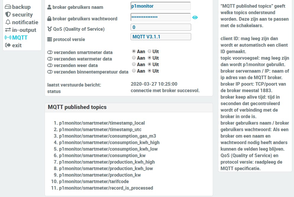 Je kunt P1 monitor sinds kort als MQTT-client instellen, waarna het programma de meetgegevens via zogeheten topics publiceert bij de ingestelde MQTT-broker in je netwerk (zie kader). Gegevens zijn dan breder beschikbaar en zitten dus minder ‘opgesloten’ in P1 monitor. Via instellingen, onder MQTT, kun je de details voor de MQTT-broker instellen en een voorvoegsel voor de topics kiezen. Geef ook aan wat er moet worden gepubliceerd. We zetten in dit voorbeeld alleen de optie verzenden smartmeter data aan. Als je het scherm vernieuwt, bijvoorbeeld door (na opslaan!) op herstel te klikken, kun je onder MQTT published topics zien in welke topics er werd gepubliceerd.