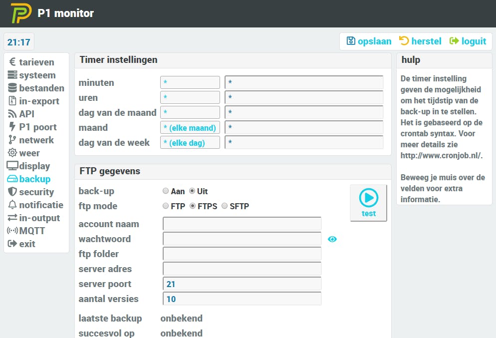 Het is verstandig om regelmatig een back-up van de verbruiksdata te maken via bijvoorbeeld ftp of naar Dropbox. De geëxporteerde bestanden kun je bij een andere P1 monitor weer importeren. Dat is ook handig als je overstapt naar een nieuwe versie. Het delen met Dropbox is tevens nuttig als je de nieuwe app voor iPhone of iPad wilt gebruiken, die de actuele verbruiksgegevens kan laten zien. Je kunt Dropbox ook gebruiken als bestemming voor een automatische back-up, zodat je bijvoorbeeld dagelijks of wekelijks een back-up van alle gegevens hebt.