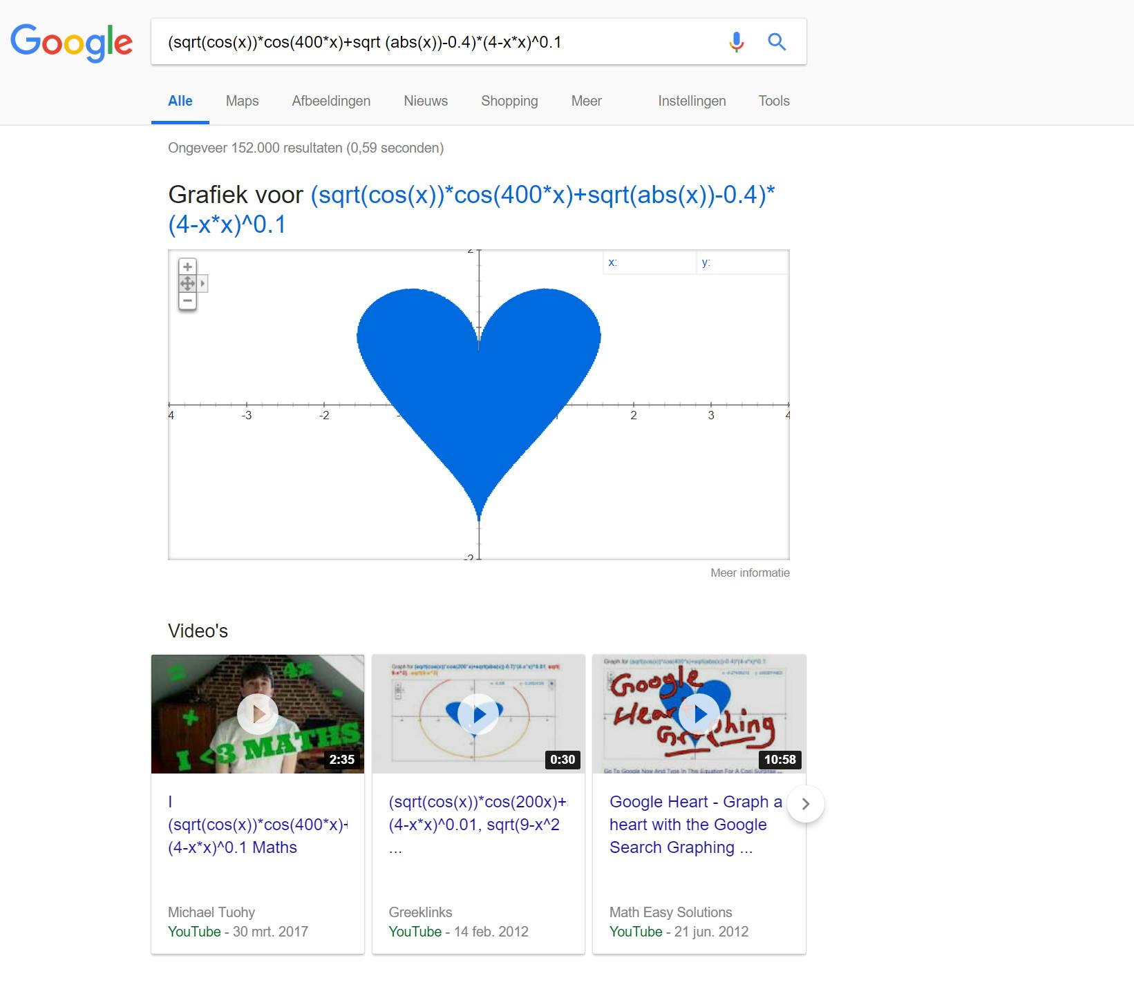 Je kunt de zoekmachine complete formules laten oplossen en zelfs grafieken laten tekenen