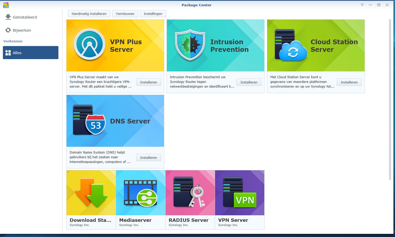 Duurdere routers van andere fabrikanten bieden meestal vergelijkbare functies, maar die zijn gewoon in de firmware zelf geïntegreerd. Een groot voordeel van de Synology-aanpak is dat je elke ‘package’ afzonderlijk kunt updaten zonder dat je de volledige firmware vernieuwt, waarna de router opnieuw gestart moet worden. De RT1900ac blijft gewoon werken terwijl je apps bijwerkt of toevoegt.