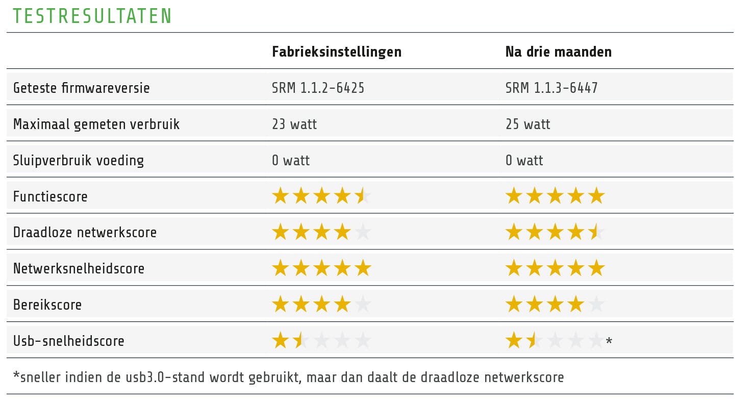 De recentste versie van SRM die wij testten, v1.1.3-6447, voegt niet alleen nieuwe functies toe, maar verbetert de netwerkprestaties. Vooral de draadloze netwerksnelheid en het bereik gaan erop vooruit. De usb-poort van de RT1900ac werkt standaard in usb2.0-modus om interferentie met de draadloze radio’s te vermijden. Je laat die instelling het best met rust, want als je de usb-poort instelt op het snellere usb 3.0 wordt het draadloze netwerk ietsje trager.