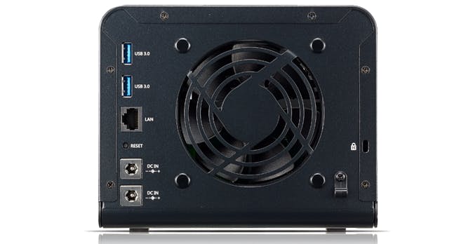 Opvallend is dat de NAS twee voedingsaansluitingen heeft. Hierop kun je een tweede voedingsbron aansluiten voor het geval er iets mis gaat met de eerste voeding. Waarom een NAS in deze prijsklasse en toepassing over twee voedingsaansluitingen beschikt is onduidelijk, het past volgens ons niet helemaal in de doelgroep van de NAS. We hadden liever gezien dat Thecus extra zou investeren in apps en software, want daarin schiet Thecus tekort.