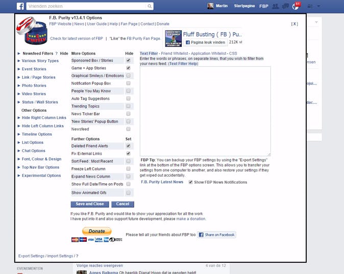 Is het je allemaal nog niet genoeg, gebruik dan een browser-extensie als F.B. Purity.