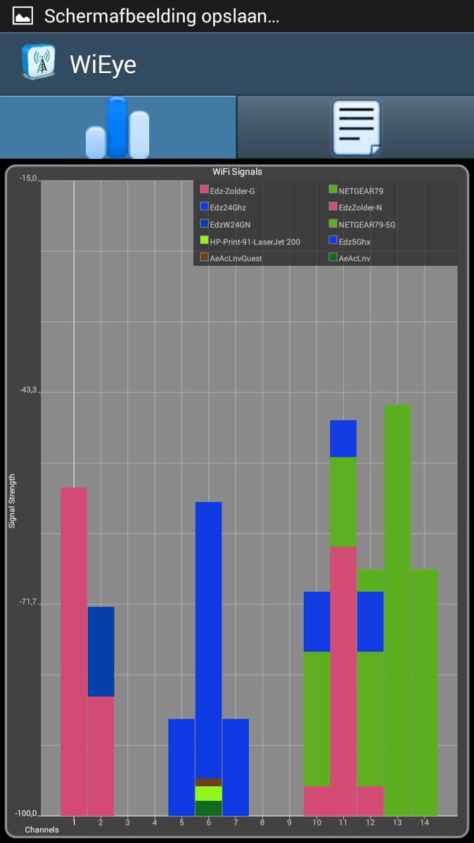 Tip 04 Bekijk de verdeling van de wifi-netwerken over de kanalen met een app op de smartphone.
