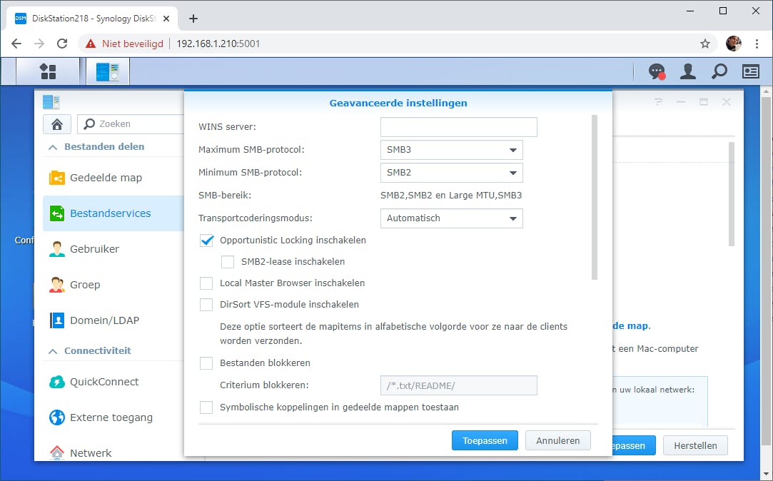 Smb wordt vooral voor Windows gebruikt en je komt in de configuratieopties van nas-apparaten dan ook vaak de aanduiding Windows-bestandsservice tegen. Er zijn verschillende versies van smb waarbij de nieuwere versies als smb 2.0 (sinds Windows Vista) en smb 3.0 (sinds Windows 8) sneller werken. Bij sommige nas-apparaten kun je de variant van smb instellen; zorg dan wel dat de nieuwere varianten ook ondersteund worden.
