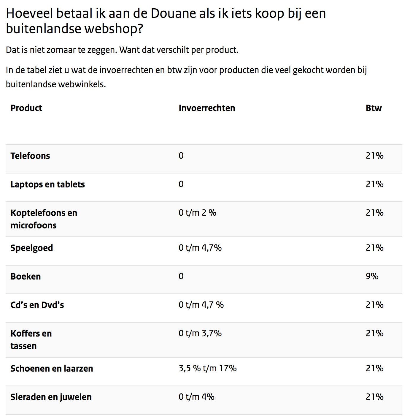 Geen douanekosten?