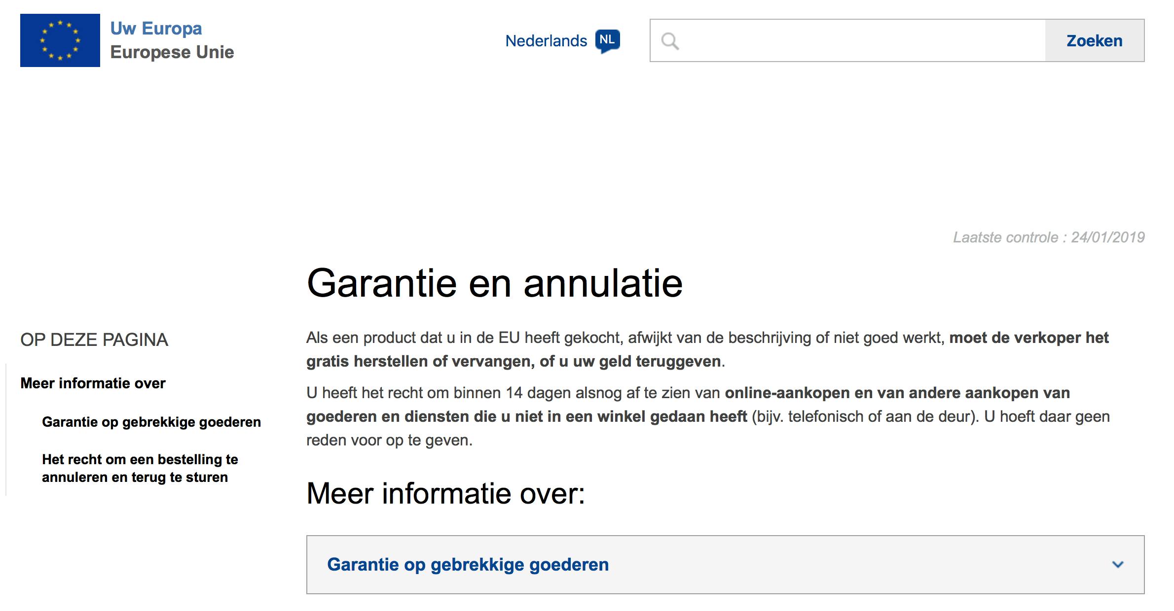 Zolang je binnen de Europese Unie iets koopt, ben je gedekt door Europese garantie- en retourvoorwaarden. Hierbij maakt het niet uit of je een product in Nederland, Spanje of Hongarije hebt gekocht: de winkel is verplicht jou een werkend product te verkopen en je kunt gebruik maken van je Europese garantierecht. Buiten de EU is dit een stuk lastiger. Met een winkel uit Zwitserland of Noorwegen kun je vaak nog wel tot een goede oplossing komen, maar bij een product dat defect uit China komt, heb je eigenlijk geen poot om op te staan. Volgens de Chinese wet heb je recht op een werkend product, maar bij een conflict moet je in China gaan procederen. Niet echt een realistische optie voor een product dat je voor honderd euro hebt gekocht.