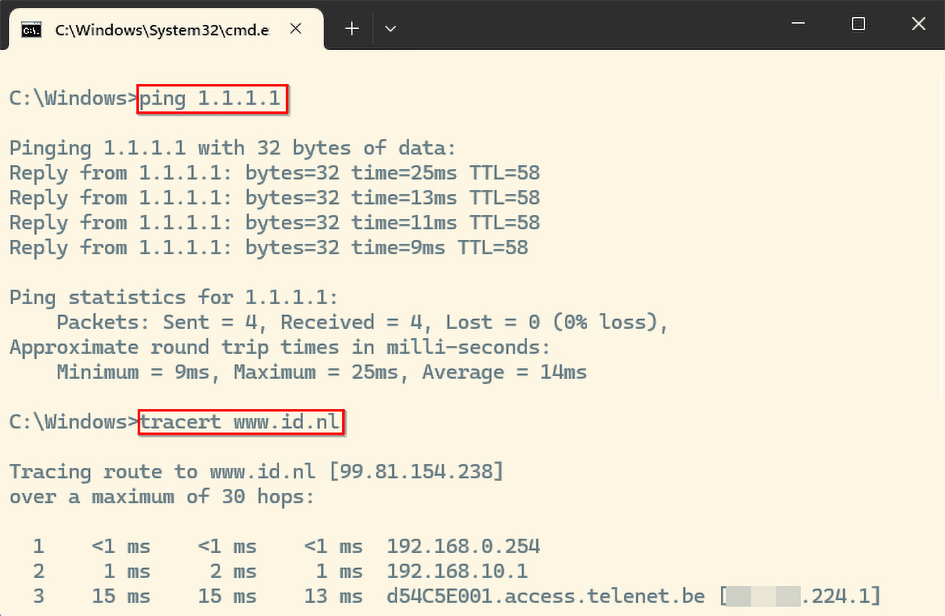 (geeft de netwerkpunten aan tussen je eigen apparaat en de webserver van www.id.nl).