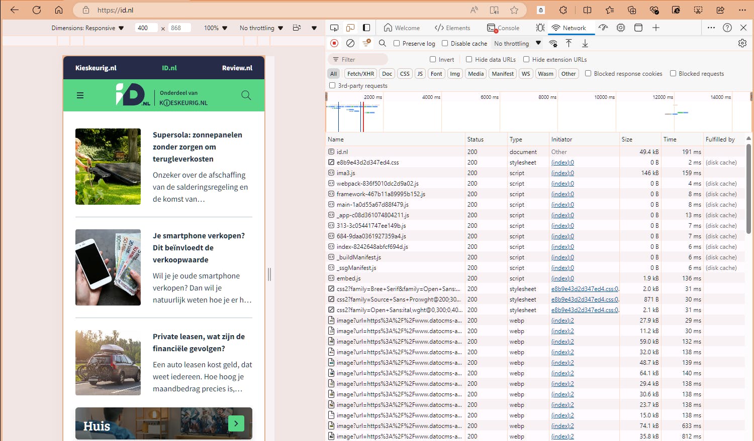 Om snel een idee te krijgen van welke informatie tijdens dit verkeer tussen je browser en de webserver wordt uitgewisseld, druk je in Chrome of Edge op F12 en houd je het tabblad Netwerk geopend.