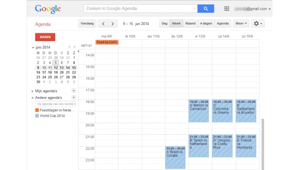 In je Google-agenda wordt het wedstrijdschema netjes weergegeven.
