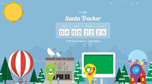 Wie daags voor kerst de site bezoekt, ziet een timer waarin wordt aangegeven hoe lang het duurt voordat de kerstman zijn motoren (eh rendieren) start, en zijn slee de lucht instuurt. Daarna kun je heel precies volgen waar de beste man zich bevindt. Ontzettend leuk gedaan, en heel fijn dat Google in deze tijden van bezuiniging nog lekker investeert in leuke initiatieven die niet direct geld in het laatje brengen.