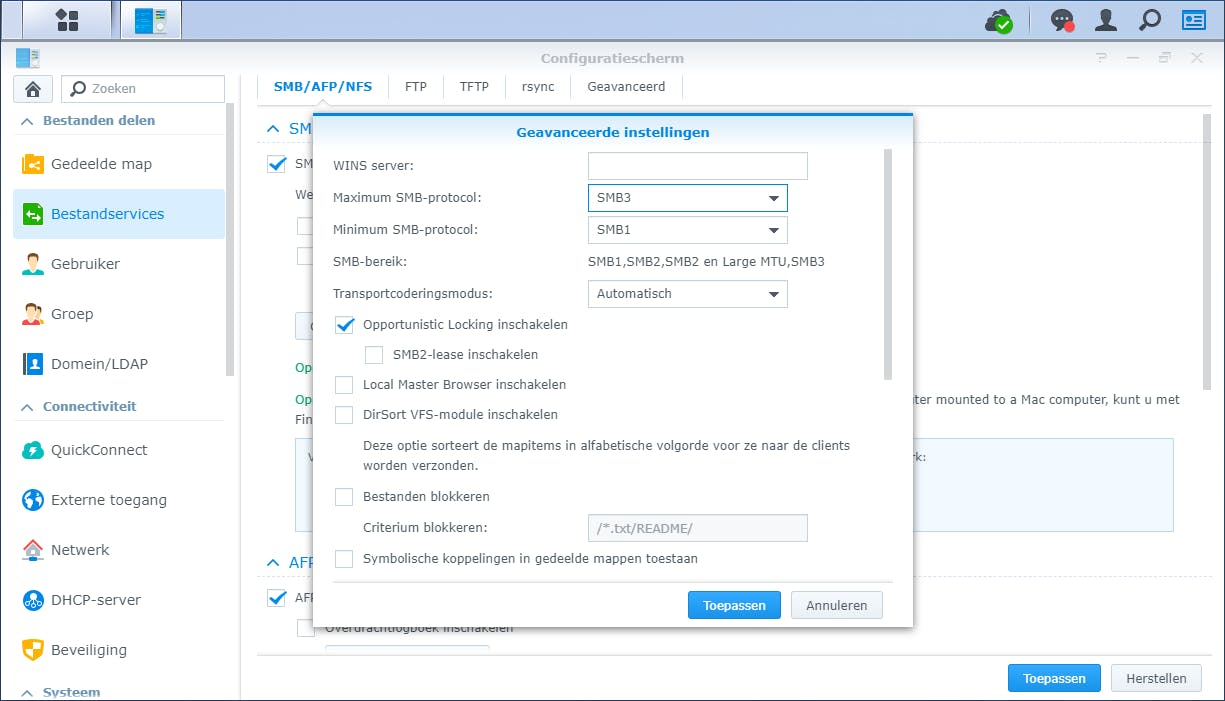 Je nas is wellicht hét centrale opslagpunt in je netwerk. Voor toegang tot bestanden vanaf een Windows-pc wordt het smb-protocol gebruikt. Vooral de eerste versie (smb 1.0) is erg onveilig. Een kwetsbaarheid stond bijvoorbeeld aan de basis van een grote aanval van WannaCry-ransomware. In Windows 10 is het tegenwoordig standaard uitgeschakeld en veel providers blokkeren de voor smb-verkeer gebruikte tcp-poort 445. In de latere versies 2.0 en 3.0 is de veiligheid verder verbeterd, onder meer door toevoeging van versleuteling, waardoor je het inmiddels ook veilig via een internetverbinding zou moeten kunnen gebruiken. Microsoft doet dat zelf ook voor gedeelde mappen van de Azure Files-dienst. Toch is het ongebruikelijk en we raden het ook af. Dat is niet alleen een vertrouwensprobleem. In veel netwerken draaien oudere, kwetsbare apparaten. Zelfs op een recente Synology-nas blijkt smb 3.0 standaard uitgeschakeld. Ook de poortblokkering bij providers als Ziggo kan je dwars zitten. Verder vallen de prestaties via internetverbindingen vaak tegen. Bovenal blijf je vatbaar voor kwetsbaarheden, terwijl het toch om je meest kritische data gaat. Voor toegang tot je bestanden in het netwerk raden we een vpn-verbinding aan of alternatieven zoals cloudopslag.