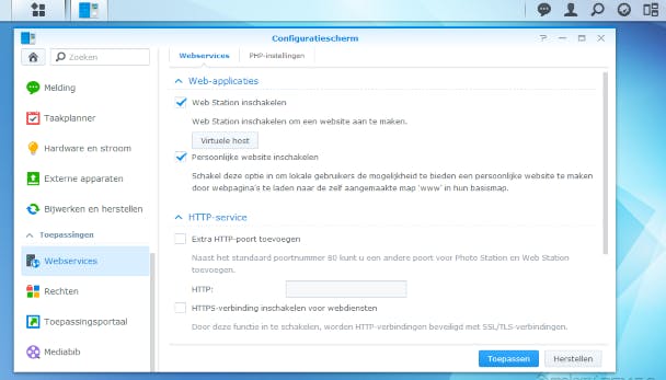 Hoewel de meeste nas-apparaten draaien op een variant van Linux, zul je hier in de praktijk weinig mee te maken hebben. Een NAS beheer je net als een router via een webinterface. Je bereikt de interface via een IP-adres en de meeste fabrikanten leveren tooltjes mee die dit IP-adres automatisch voor je opsporen. Het is verstandig om je nas een vast IP-adres te geven, zodat je hem altijd eenvoudig kunt bereiken. De webinterfaces van nas-fabrikanten gaan steeds meer op complete besturingssystemen lijken. Je kunt via de webinterface de nas instellen, bestanden beheren en uitbreidingen installeren. Ook bevatten nas'en applicaties om films, muziek en foto's in de browser te bekijken.